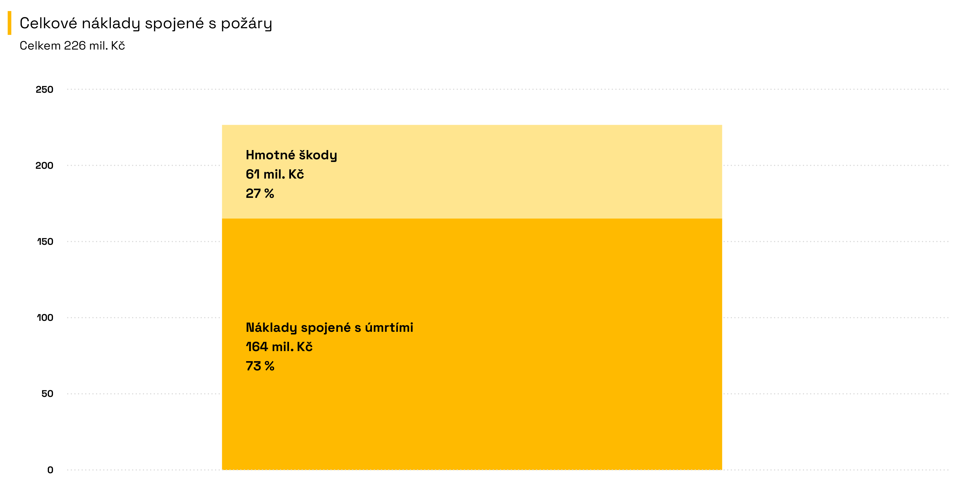 V roce 2019 bylo zaznamenáno přes 1 400 požárů způsobených kouřením, což představovalo přibližně 7,5 % všech požárů. Tyto požáry způsobily hmotné škody ve výši 60,8 milionů Kč (2,37 mil. €). Požáry způsobené kouřením si zároveň vyžádaly 15 obětí na životech. Ztráta spojená s těmito úmrtími se odhaduje na 164,3 milionů Kč (6,4 mil. €). Celkové náklady na požáry způsobené kouřením tak dosáhly 225,9 milionů Kč (8,8 mil. €), což činí 323,8 milionů Kč v přepočtu na rok 2025.