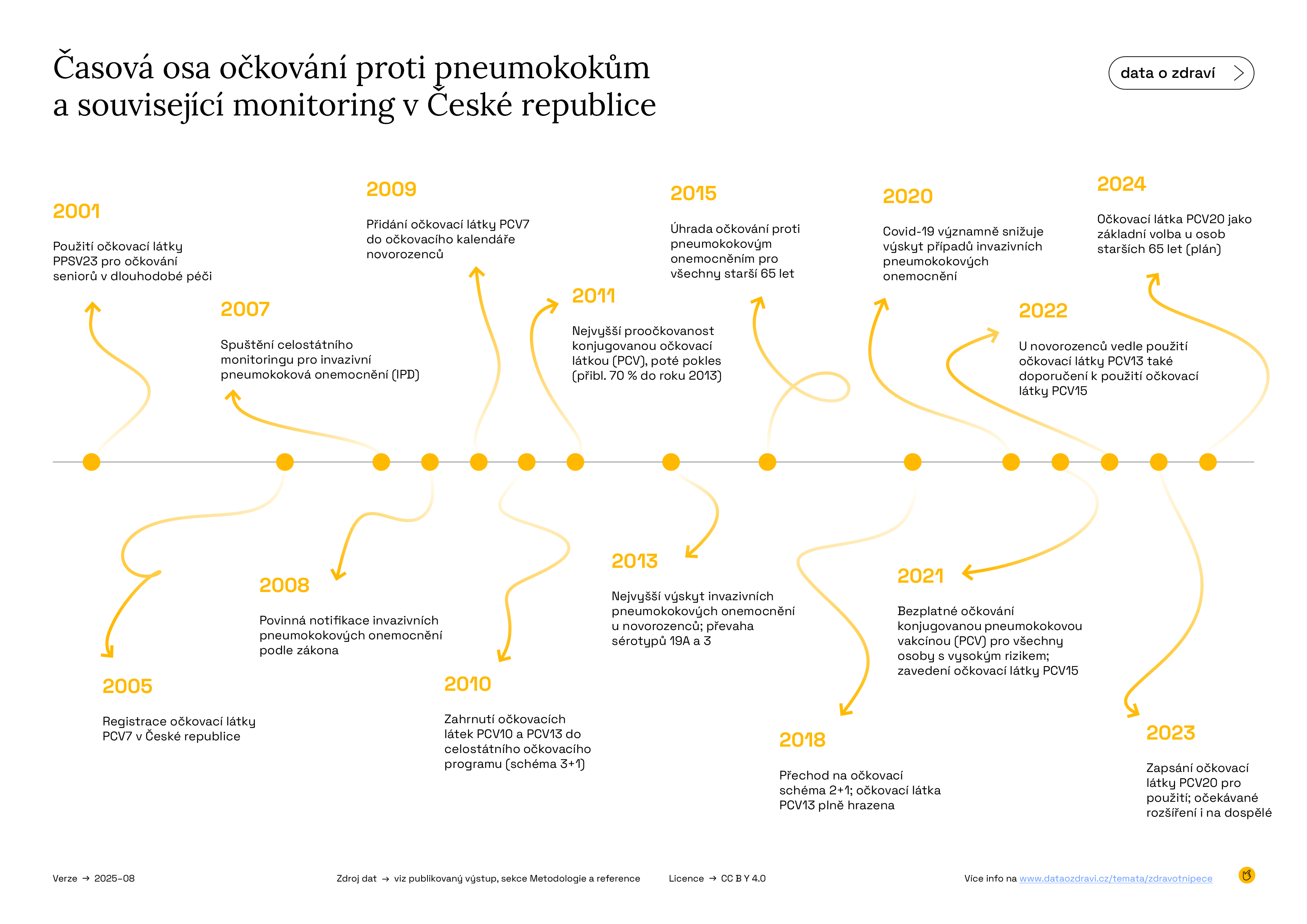 Časová osa očkování proti pneumokokovým onemocněním a související monitoring v České republice