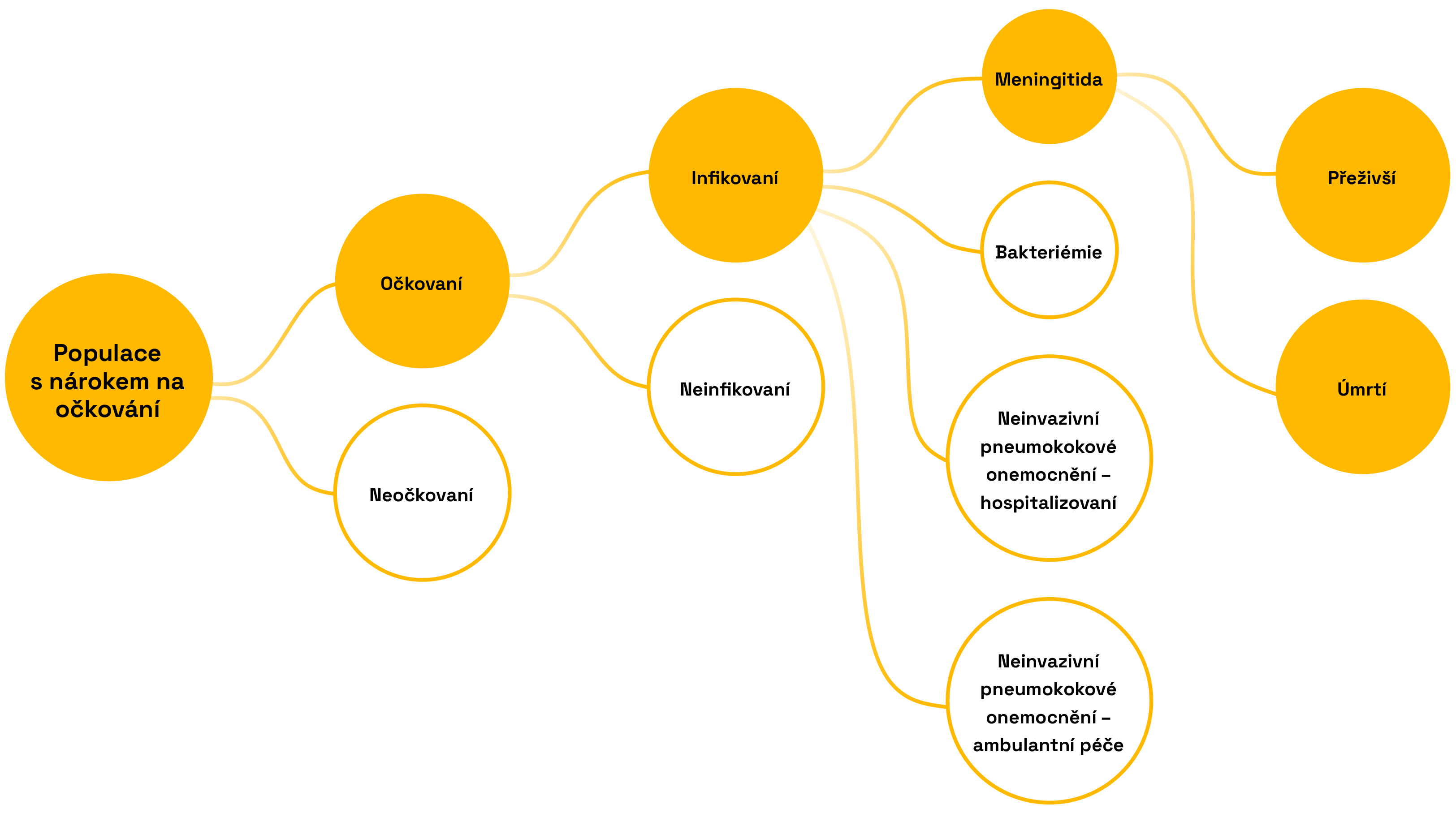Model pro pneumokoková onemocnění vychází z rozhodovacího stromu podle Talbird a kol., 2021 a zahrnuje věkově specifickou incidenci invazivních a neinvazivních pneumokokových onemocnění a související míru využití zdravotní péče a úmrtnosti.