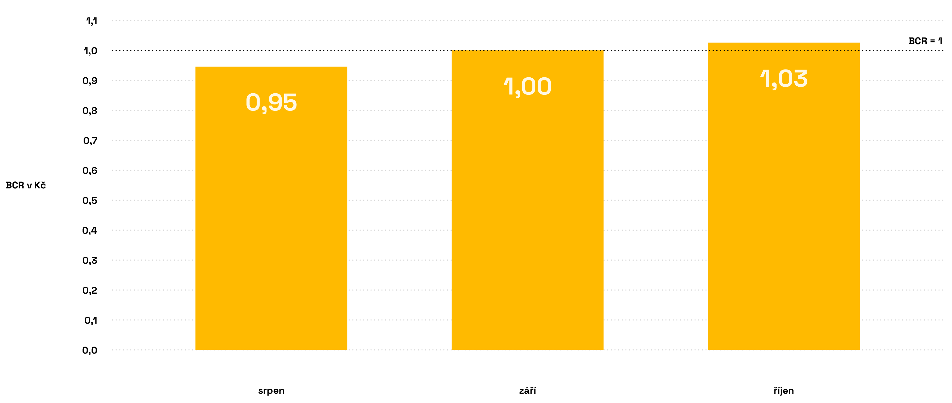 Náklady na zavedení a uskutečňování programu jsme porovnali se získanými přínosy, a to v českých korunách (CZK). Díky tomu jsme mohli odhadnout, jaký je přínos každé koruny investované do programu.