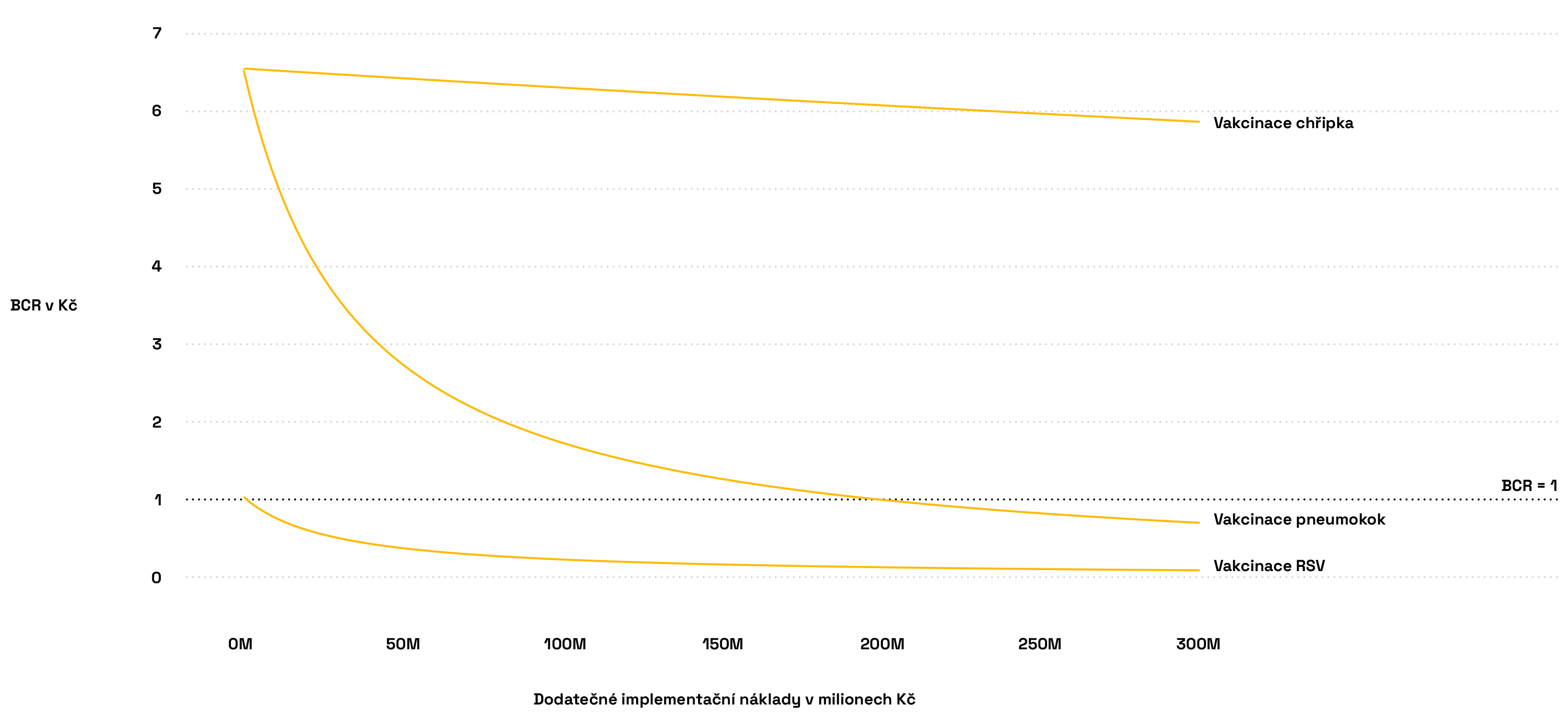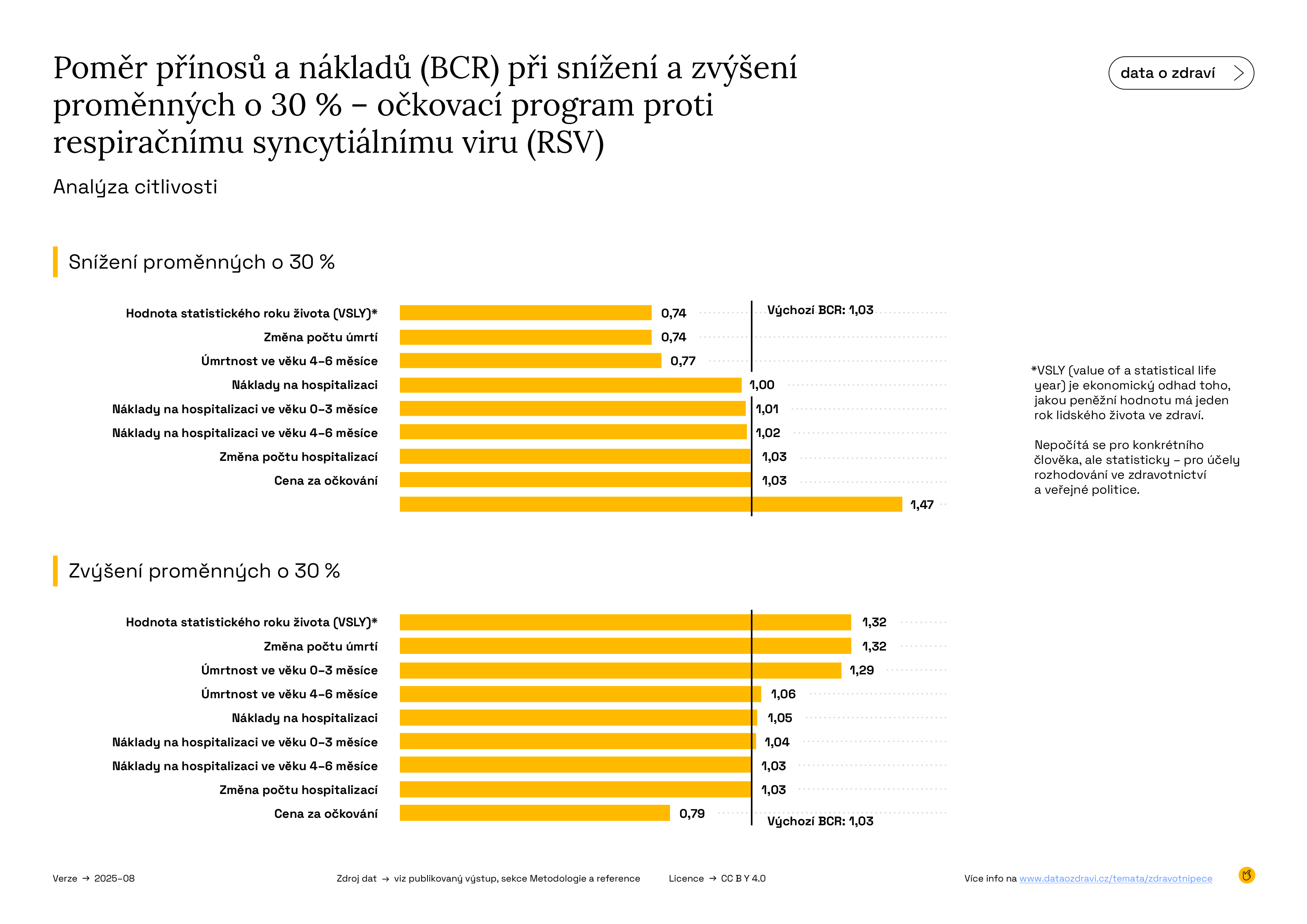 Pokud se klíčové faktory v analýze změní o ±30 %, může se BCR pohybovat buď nad hranicí 1, nebo pod ní. To znamená, že efektivita programu závisí především na načasování očkování a průběhu sezóny RSV.